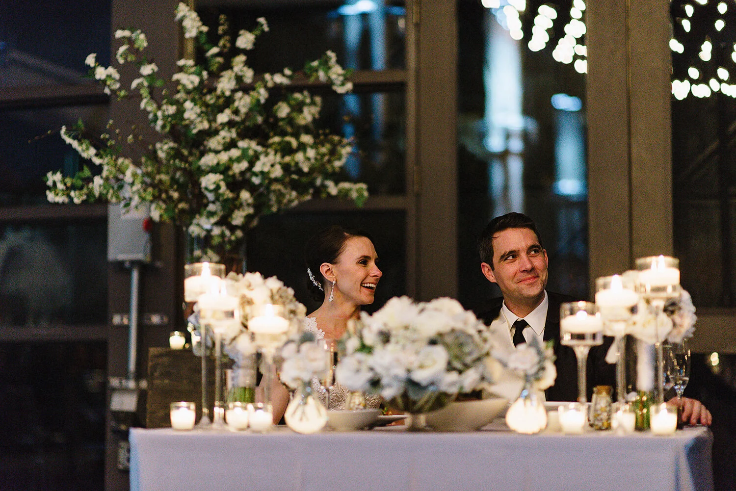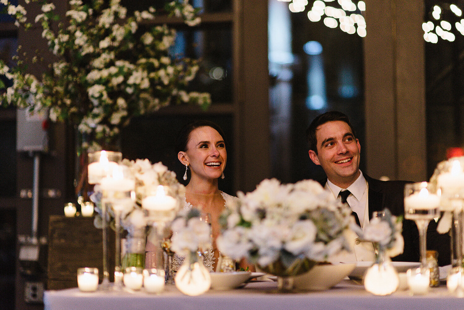The bride and groom got ready at a hotel nearby and opted to walk to their wedding ceremony, which took place outside the SteamWhistle Brewery overlooking the historic train yard and the CN Tower as the spring sun broke through the clouds intermittently. We took advantage of the incredibly diverse landscape that downtown Toronto has to offer to capture a few portraits along the way, making most of the rapidly changing light within the surrounding urban jungle.The wedding reception inside the SteamWhistle Brewery was beyond beautiful and surpassed even my own expectations. The rustic aesthetic was utterly authentic and set the scene for an incredibly elegant and sophisticated wedding reception, the bride and groom shared their first dance with the setting sunlight as it peeked through the cracks and windows as they lived in their own world together for 3 and half minutes. The sunset light was so good that Neil actually urged us to head outside and so they could enjoy a moment together and take in the whirlwind of their wedding day.